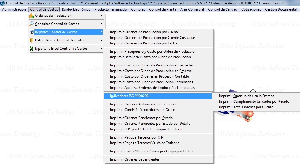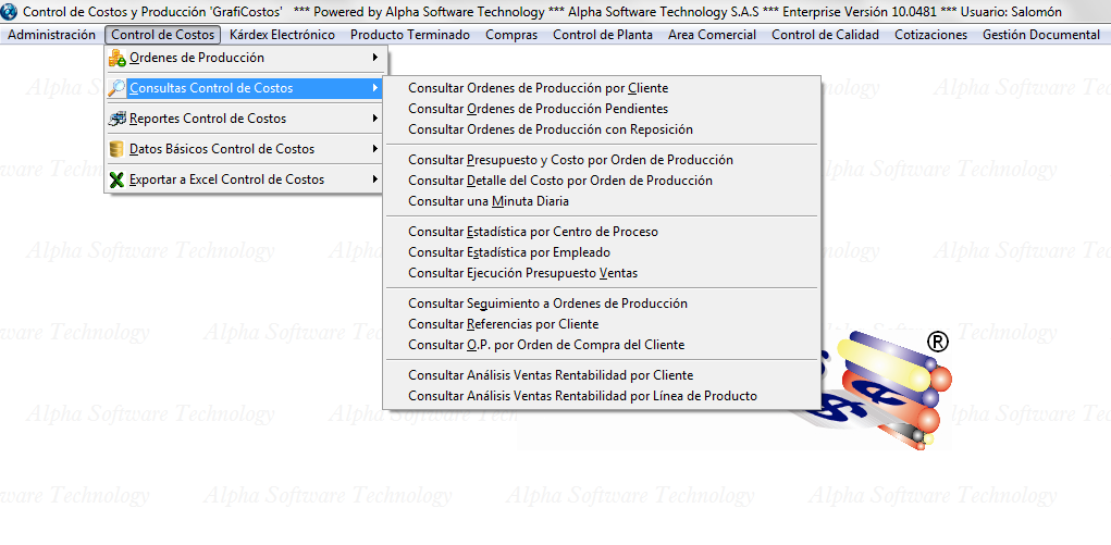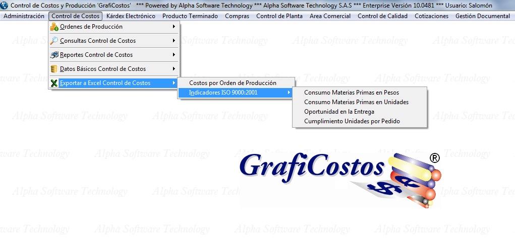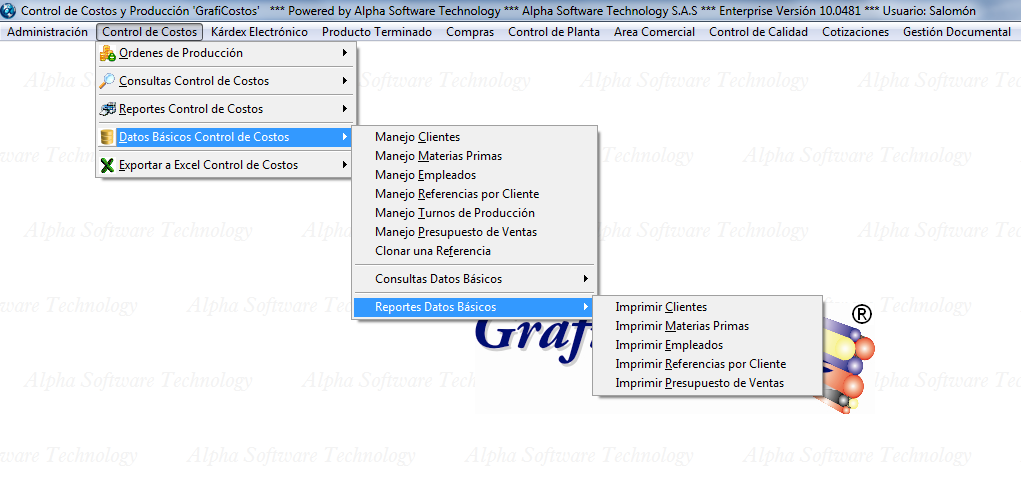 Menú Control de Costos